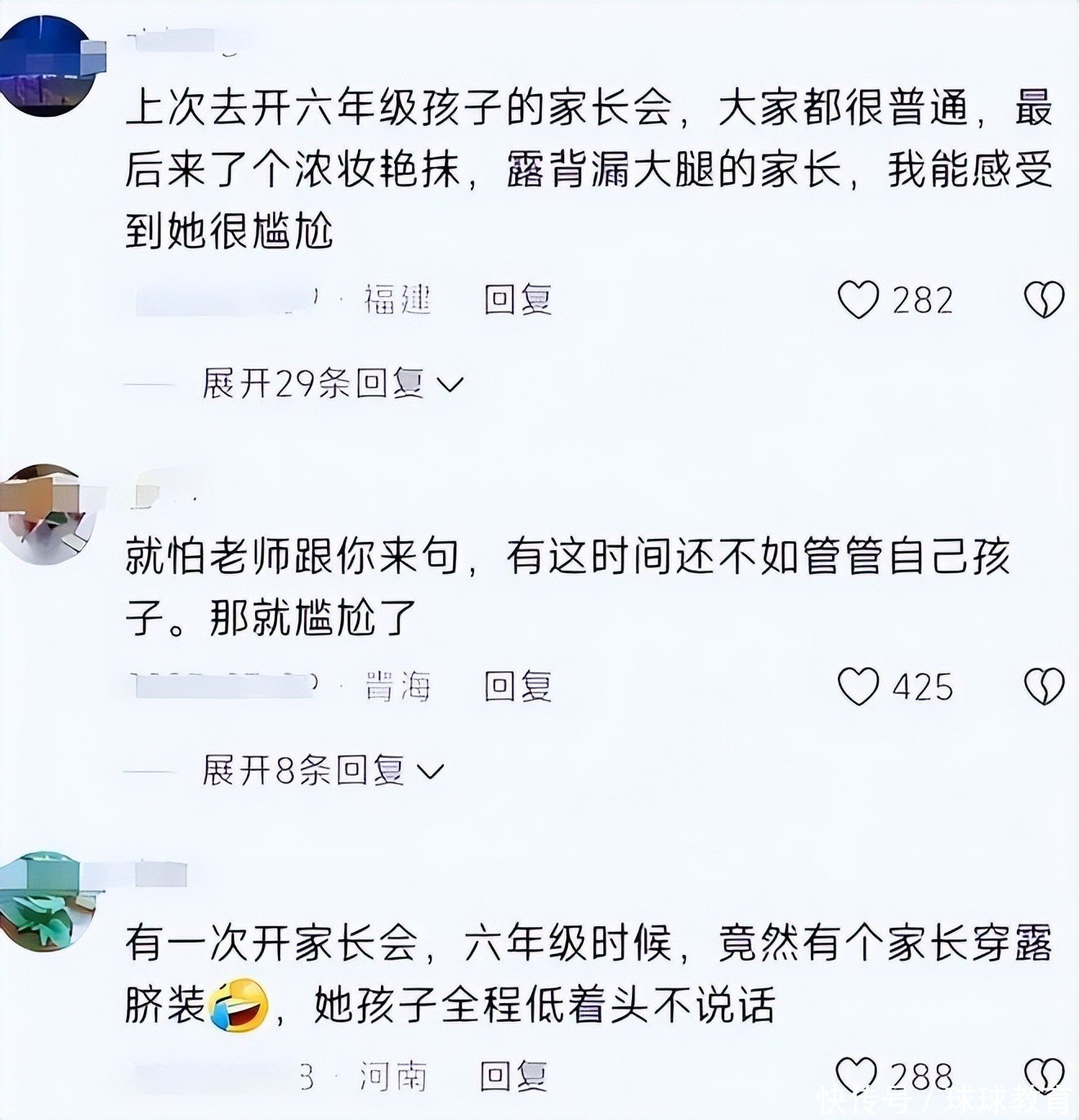 最后一点也是最重要的一点,家长们不要忘了开家长会是为了什么,不是去选秀更不是去宫斗,你打扮得多幼态大家也知道都是为人父母的年纪,着实没必要,有这个精力真不如多关心一下孩子在学校的学习情况,和老师与其他家长沟通,可比穿粉色吊带裙去争奇斗艳有意义得多。